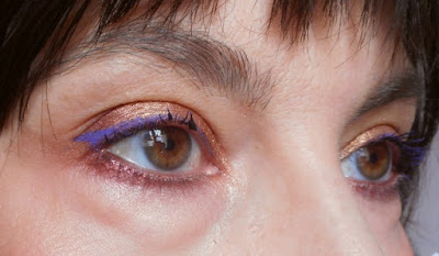 El delineado a ras de pestañas superiores está hecho con el delineador líquido Vivid Brights Vivid Violet de Nyx. He dado dos capas. La primera hay que dejar que se seque del todo antes de aplicar la segunda. Así ganamos intensidad.
