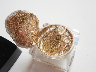 Se trata de un gel plagadito de glitter que se aplica directamente con el dedo o con pincel, y crea una base para aplicar otros glitters y conseguir mezclas, además de ayudarlso a fijarse mejor, aunque puede usarse por sí mismo.