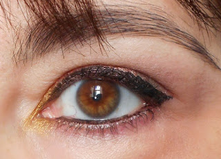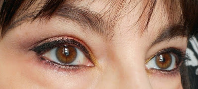 Trazamos un delineado gatuno a ras de pestañas superiores con el Gel Liner 77 de Inglot, de color negro negrísimo, y rellenamos la waterline inferior con él. Maquillamos las pestañas superiores con la Máscara Love My Lashes Volume de Deborah Milano, de la que os hablaré muy pronto en el blog.
