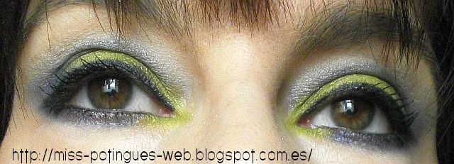 Comenzamos creando una base pistacho o lima en el párpado móvil, insistiendo en el lagrimal y primer tercio de la línea inferior de pestañas. Yo he utilizado el jumbo para ojos Glamour N&C Verde Lima de Deliplús.
